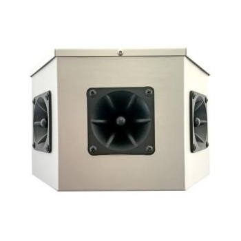 Boitier aluminium résistant aux intempéries avec 3 tweeters piézoélectriques.
